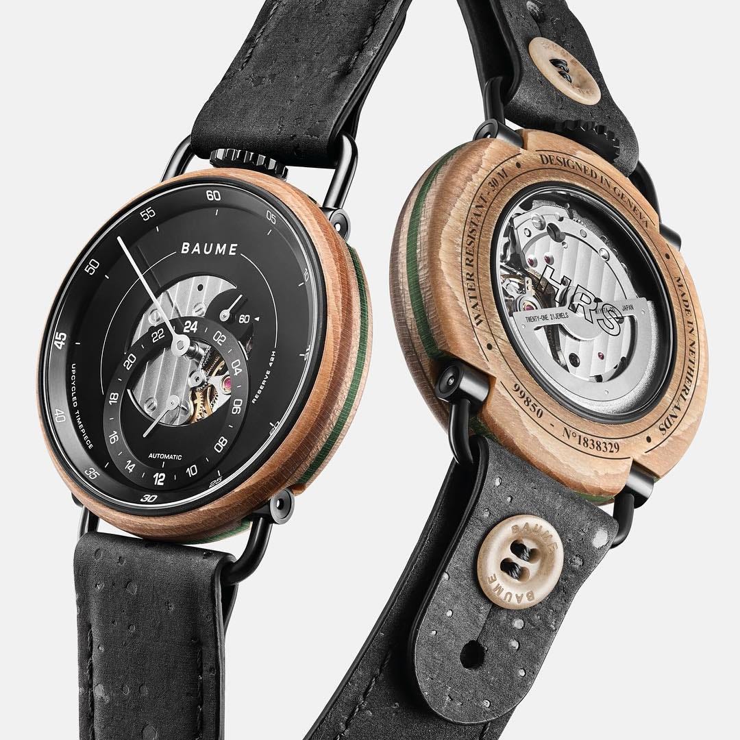 Baume was launched in 2018 by the Switzerland-based luxury goods holding company, Richemont. The name comes from the mother brand Baume & Mercier. However, Baume is a new brand that operates independently. Baume watches are sold exclusively online, and the brand only uses natural or recycled materials in the manufacturing process, including skateboard pieces for the case.