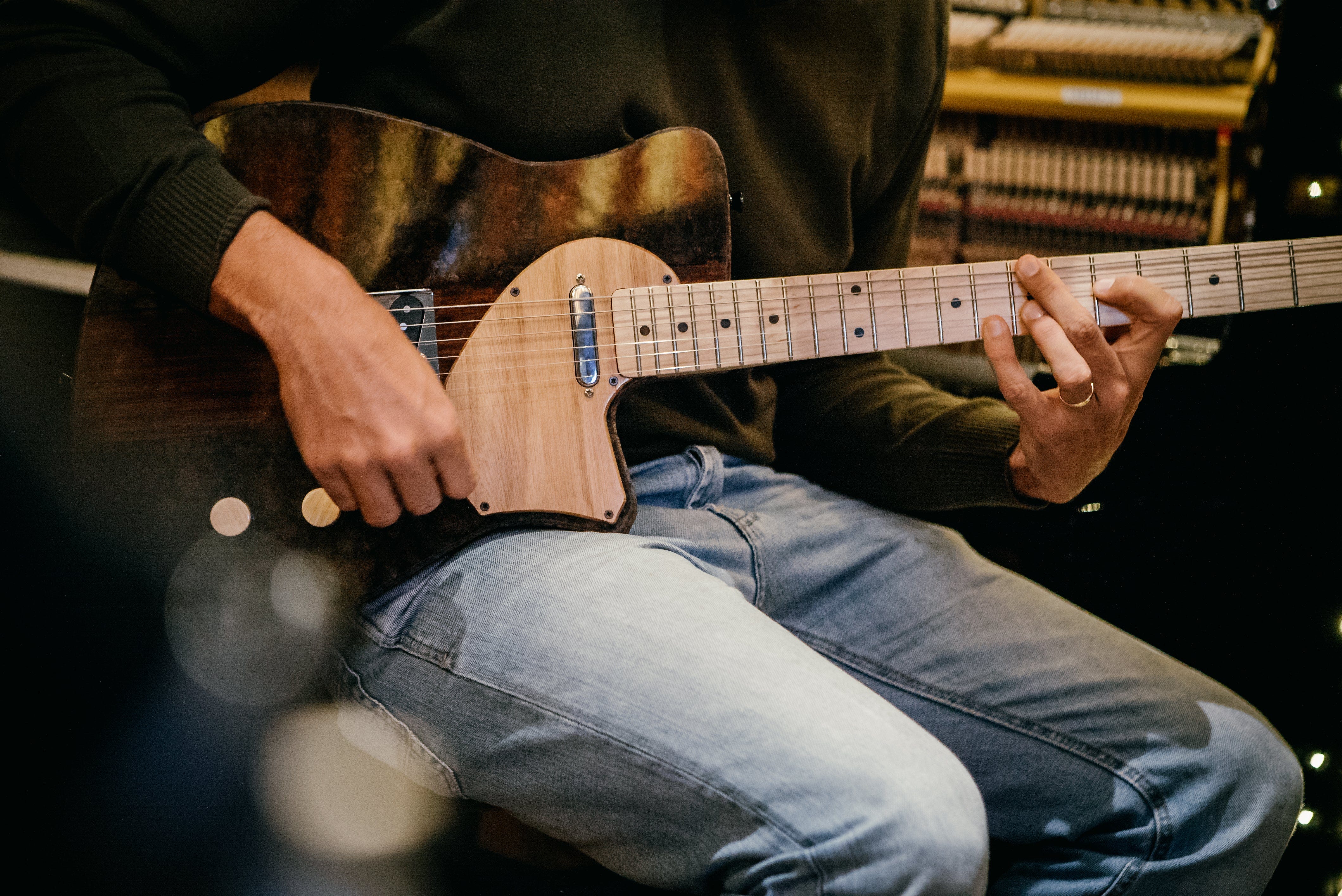 Currently, the designer/musician is already developing a new guitar while improving the craft of this beautiful first model. Another novelty expected for 2020 is a carrying case for the instrument, made from natural cork boards (90%) and wood that will give a reliable and light structure. All the wood used on the guitar or in the carrying case is recycled. “It’s a fun process, going to the carpentry and never knowing what we’re going to find, it’s almost like a chef who goes every day to the market and prepares his dishes with fresh, seasonal products.”